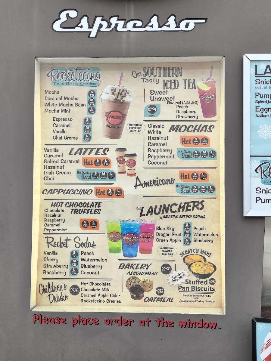 Highlights like the Peach Rocketccino Cremes and the White Chocolate Mocha Rocketchino with an extra shot offer a cozy balance of sweet and rich flavors that fit seamlessly with the friendly, easygoing vibe of the café. For those seeking something refreshing, the Peach Iced Tea allows a choice between sweetened, unsweetened, or a half-and-half blend, catering thoughtfully to varying preferences.